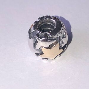 Retired Pandora sterling silver charm with 14k solid gold stars