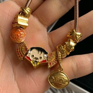 Retired Rare Pandora Carrier Flower Clasp Gold Heraldic Radiance Amethyst Padlock Snake Chain Padlock Bracelet with 10 Brand New Doctor Strange European Gold Theme Charms