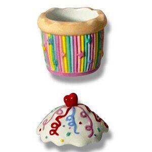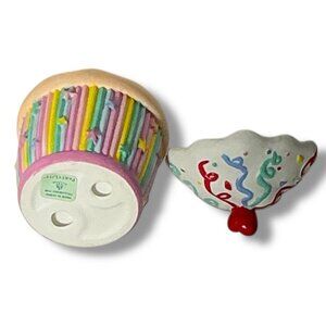 Retired PartyLite Birthday Porcelain Cupcake Multipurpose Candle Holder or Trinket Box Collectible Colorful Multicolor