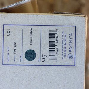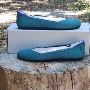 Retired Rothy's Spruce Python Flats Size US Woman's 7. The condition is "New in Box" but the box is slightly damaged on the top and opened but shoes were never worn.