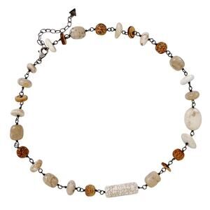 Each bead tells its own organic story—smooth howlite marbled with gray, opal in earthy shades, and seeds with natural texture worn soft by time. Together they form a necklace that carries the quiet rhythm of nature, anchored by sterling silver links and the recognizable touch of Silpada design.