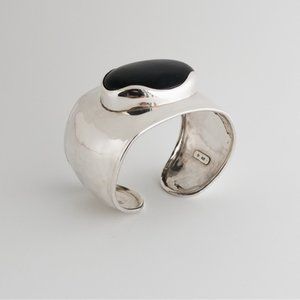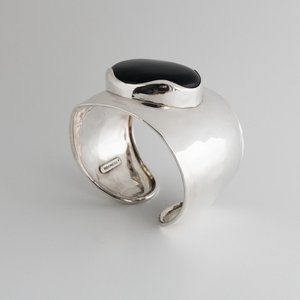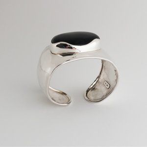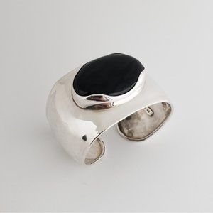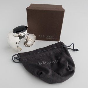 This beautiful large Silpada Chalcedony Cuff Bangle Bracelet is the perfect addition to any outfit. Its hammered texture and bold statement will add some sophistication and style to your look. Crafted with high quality sterling silver and genuine black chalcedony gemstone, this bracelet is both luxurious and stylish. This bracelet can be worn for any occasion or season. With its rich colour and comfortable fit, this bangle bracelet is sure to become a favourite piece in your collection!