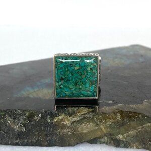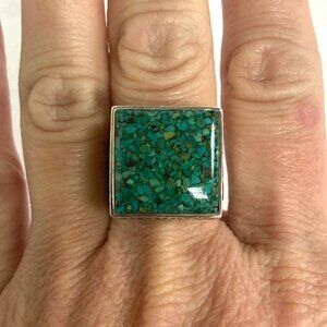 Retired Silpada Sterling Silver 925 Heavy Crushed Turquoise Stamped Ring Sz 7.5