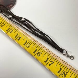 Retired Silpada brown suede 5 strand silver beaded necklace with large carved pen shell pendant
