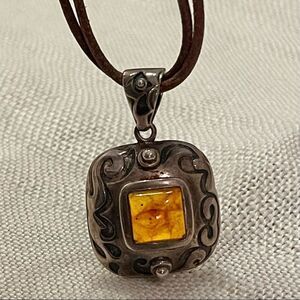 Retired Silpada Square Natural Amber Sterling Silver Slide Silpada Leather Cord