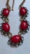 Beautiful heavy statement necklace features 5 red cabochons that are open to the back and each has 5 faceted crystals along the edge. Adjustable up to 22 inches. Ready to wear and dazzle
