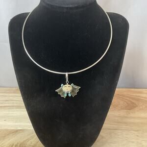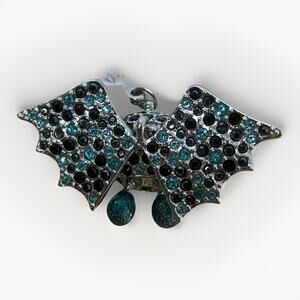 Swarovski Crystal Bat Charm Black Teal Rhinestones Enamel Face Halloween