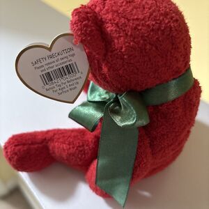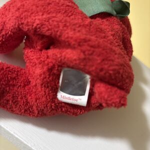 Retired TY Beanie Baby/Babies MISTLETOE Red Plush Bear Green Bow 12/18/2000 MWMT