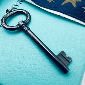 Retired Tiffany & Co. Black Titanium Oval Key Charm Pendant with Pouch