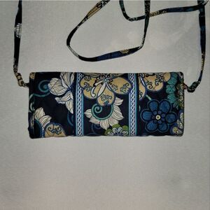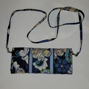 Retired Vera Bradley Mod Floral Blue Tri-fold Clutch Wallet Purse w Detachable Crossbody Strap