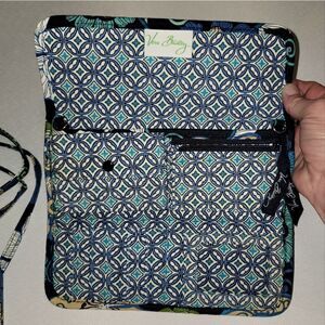 Retired Vera Bradley Mod Floral Blue Tri-fold Wallet Purse w Detachable Strap