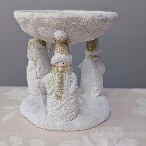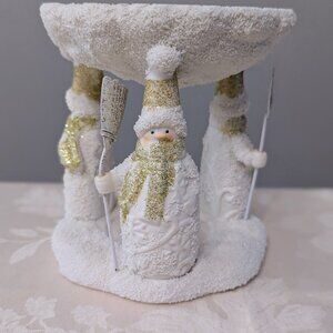 Retired Yankee Candle Glitter Three Snowman Tart Wax Warmer Gold Accents Holder