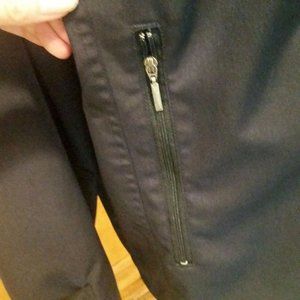 Adjustable cuff. Vents on the front. Fully lined. Zippered angled pockets.