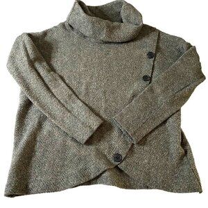 Retrelogy Herringbone Turtleneck Pullover Sweater Cropped with Buttons Gray Size S/P
