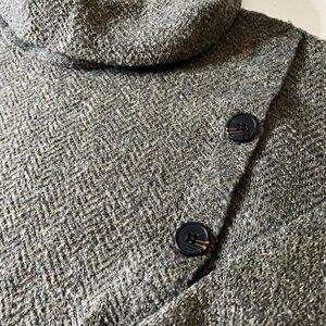 Retrelogy Herringbone Turtleneck Pullover Sweater Cropped with Buttons Gray S/P