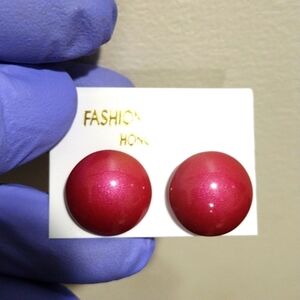 1980s earrings, retro dome earrings, vintage earrings, Red enamel studs, enameled metal earrings, bold stud earrings, vintage costume jewelry, retro accessories for women