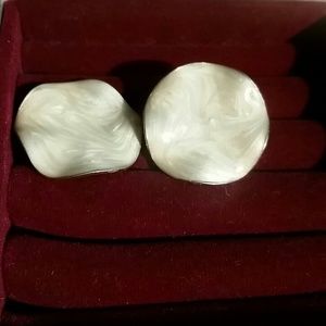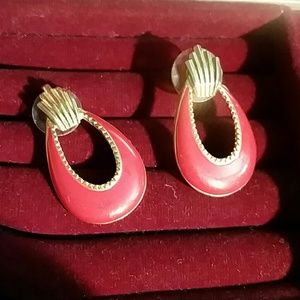 Retro red and white polka dot earrings, Retro red and gold earrings, Cream wavy earrings, Gold choker.