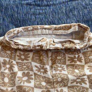 Vintage-Inspired Mini Skirt, Tan & white daisy print with a checkered mod pattern—perfect for retro lovers. Think 60s Twiggy meets 2000s McBling. Super cute with crop tops, baby tees, or platforms.