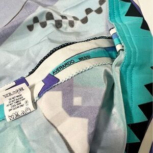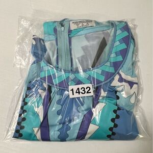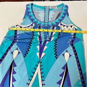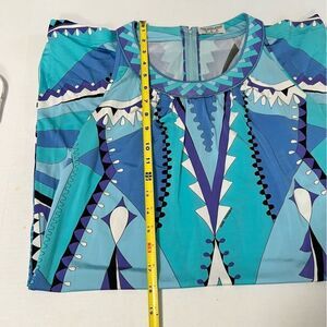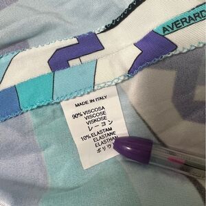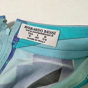 This beautiful Italian designer dress by Avarado Bessi is a very mediterranean blue contemporary print in the style of pucci. 60s or 70s mod vibe.