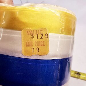 This package of ribbon contains 14 different spools with each being 15 feet long. Total footage is 210 feet or 70 yards. Sun Glo by Sun Chemical Company. Old stock from the 70s. Still in original packaging!