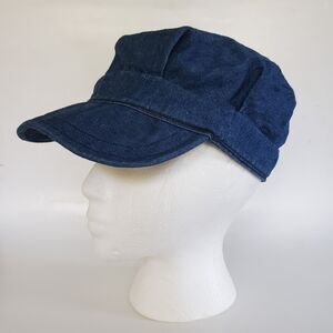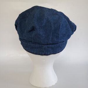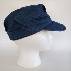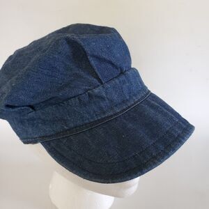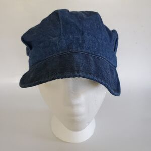 Retro 70's Denim Jean Cap Pleated Field Hat Bendable Brim Newsboy Conductor Style ~ Vintage