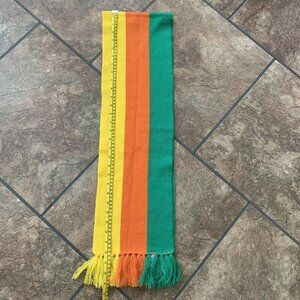 Retro 70’s Knit Scarf Orange Yellow Green Long 62” Acrylic Fringe