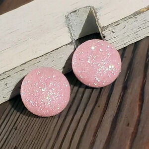 Retro 80s Club Glam Disco Sparkly Light Pink Fabric Button Earrings