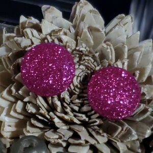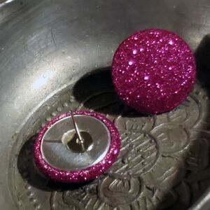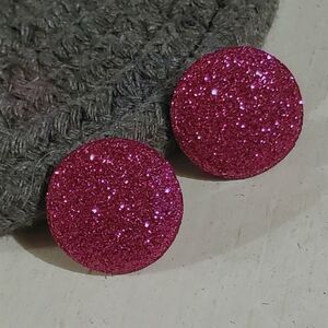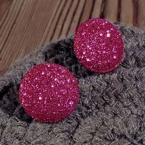 Retro 80s Club Glam Disco Sparkly Magenta Pink Fabric Button Earrings
