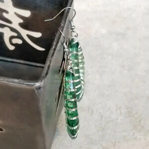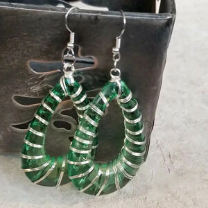Retro 80s Disco Statement Green Lucite Open Teardrop Wire Wrapped Earrings