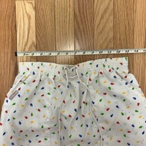 See photos for measurements. Excellent vintage condition. Comfortable elastic waistband with decorative tie. Multi-color tear drop shape pattern with large square pockets