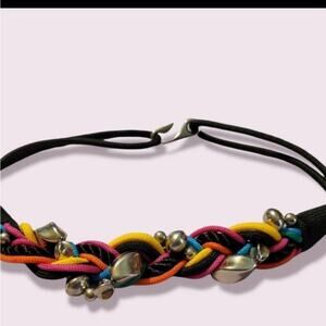 Retro 80's VNTG Beaded braided rope belt M/L, brand unknown. hook clasp in the back; bold bright colors that will add a fresh look to anyone's apparel.