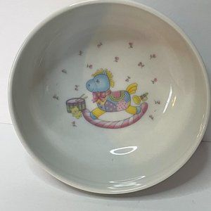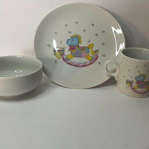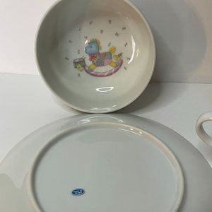 Retro 90s 3 Piece Japan Porcelain Baby Place Setting Set Quilted Rocking Horse