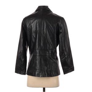 Retro 90s Black Leather Classic Womens Blazer Jacket Petite Small Wilsons Button