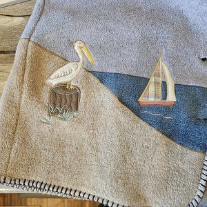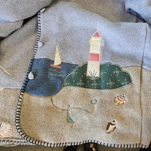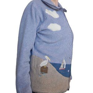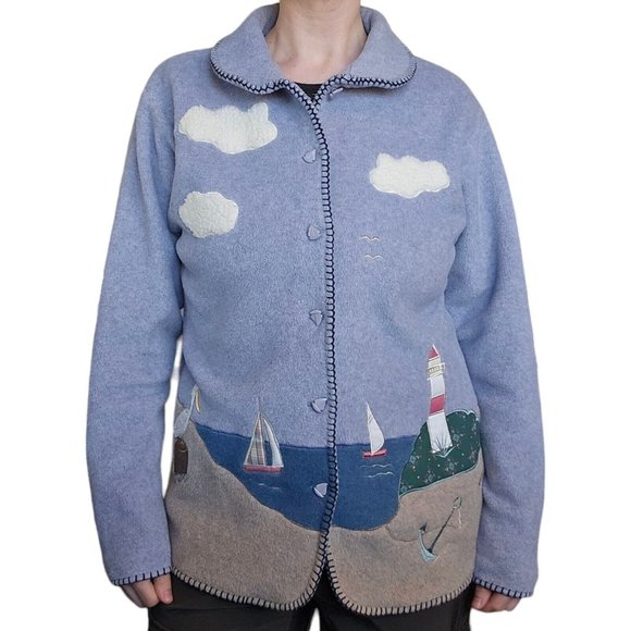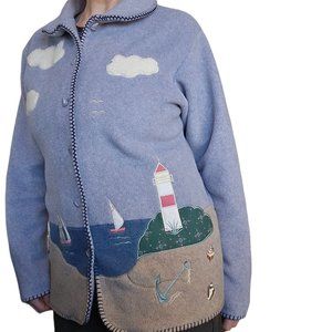 Retro 90s Coastal Grandma Lighthouse Fleece Jacket Nautical S/M Beach Sailboat