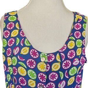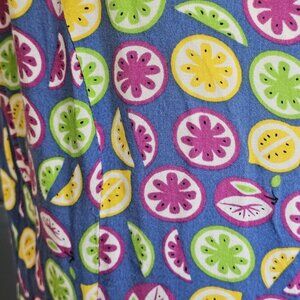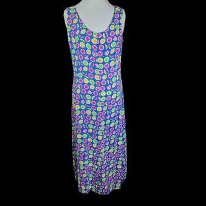 Retro 90s Fruit Print Colorful Maxi Button Down Dress Long Rayon Sz L Or Loose M