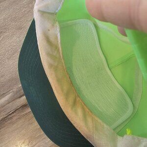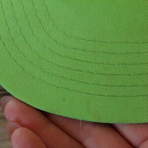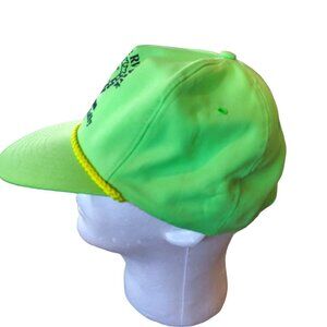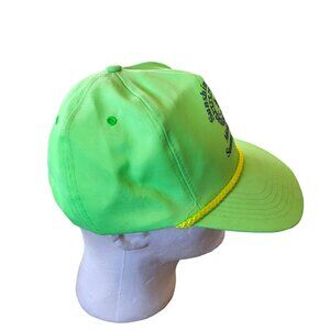 1990s Neon Green Trucker Rope Hat Sunshine RV Park Michigan Summer Rally. Fits adult small to medium size head