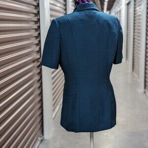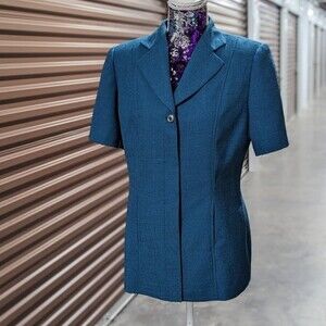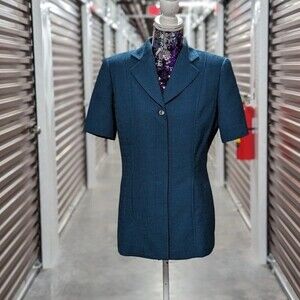 Retro 90s Women's Size 10 Blue Short Sleeve Button Front Suit Blazer Jacket