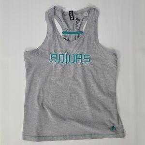 Retro Adidas Tank Racerback Sleeveless Team Embroidered Logo Gray Teal, Large