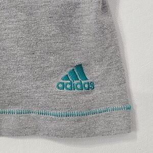 Retro Adidas Racerback Sleeveless Cotton Team Tank Top with Embroidered Logo Grey with Teal / Turquoise Blue Details