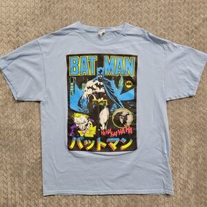Retro BATMAN JOKER DC Comics Shirt Size LARGE Blue Killing Joke Bruce Wayne