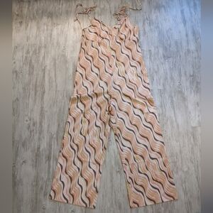 Retro Barbiecore Pink Multicolor Tie-Shoulder SheIn Jumpsuit Size Small