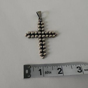 Perfect for a man or woman this retro beaded .925 cross pendant would look great on a short or long chain. This cross hangs 3 inches long and is 2 inches wide and weighs in at 13.05 grams.