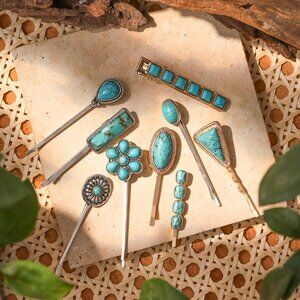 Features: Vintage-inspired turquoise floral hairpins with detailed design, perfect for adding a sophisticated boho touch to any hairstyle. Easy to insert and hold securely without slipping or tangling.