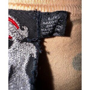 Retro Beige Polka Dot Puff Sleeve Button-Up Sweater Black Flower Accent Large