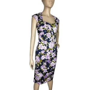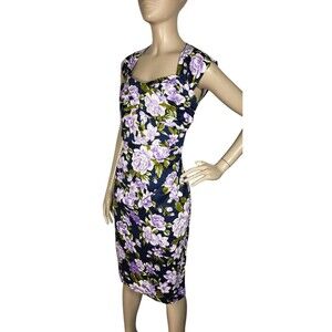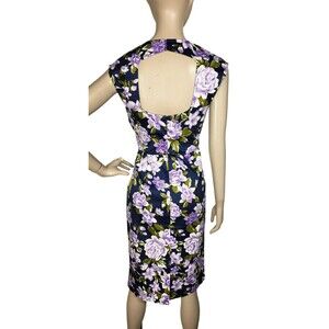 Retro Belle Poque Vintage Floral Pin Up Cutout Back Pencil Wiggle Dress Size 6