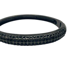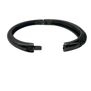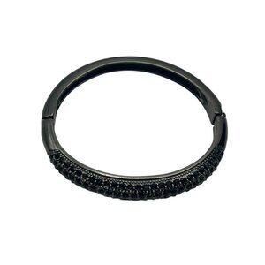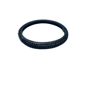 Featuring this pretty black rhinestone gunmetal gray bangle bracelet. It measures 2 1/4” and will fit a smaller to average wrist. The bracelet opens and has a safety latch and is in very good vintage condition.