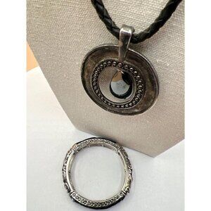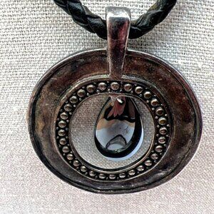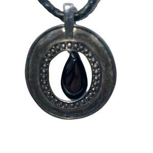 Retro Black Teardrop Pendant Necklace & Silver Bracelet Set B42