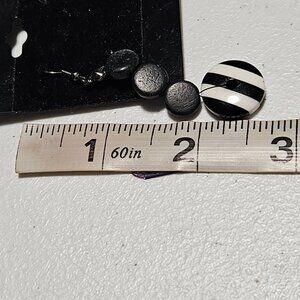 Elevate your evening look with these retro black and white striped disc drop earrings. A bold statement piece that effortlessly combines vintage charm with modern fashion sensibilities, perfect for any occasion.