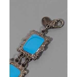 Retro Blue Enamel Gray Metallic Book Link Chain Bracelet 7.5"