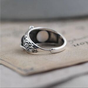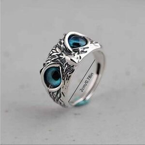 Retro Blue Eye Owl Open Ring, Exaggerated Animal Adjustable Finger Ring